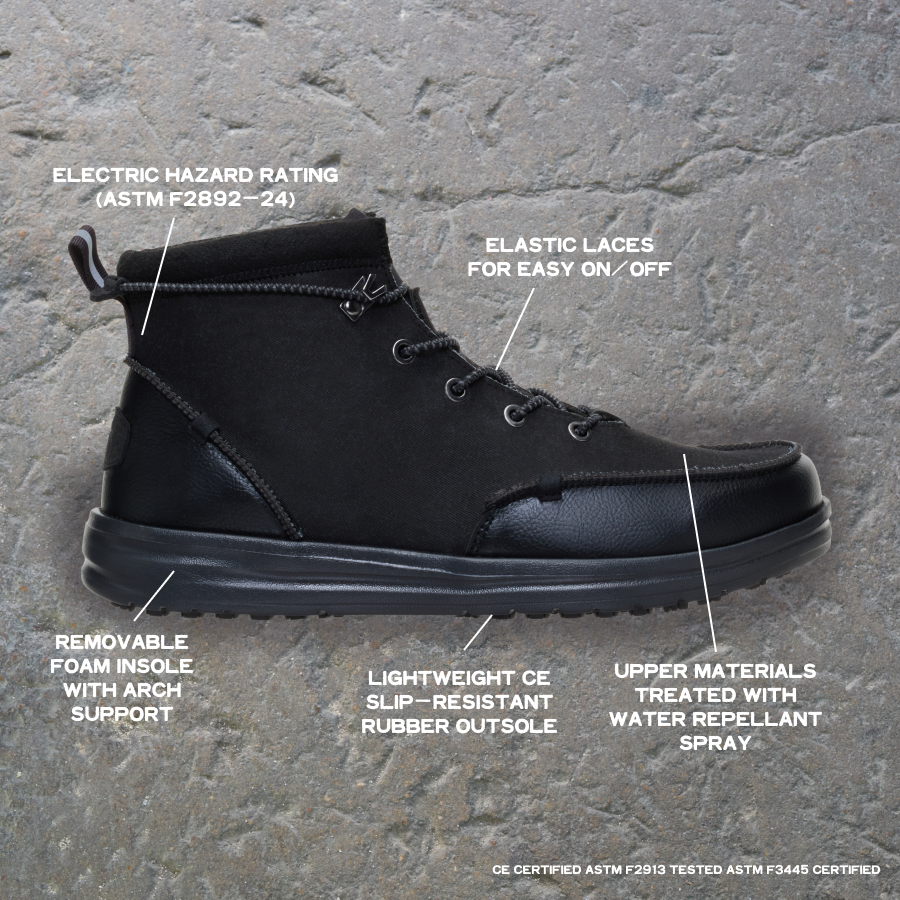 Trick question: is it really a boot if it feels like you’re walking on clouds with a mesh upper Or has water-repellent faux leather superpowers Or feels like next level slip-resistance but also a sneaker boot No seriously. we’re asking. Because this lace-up Bradley’s got it all. Now fully CE certified.
