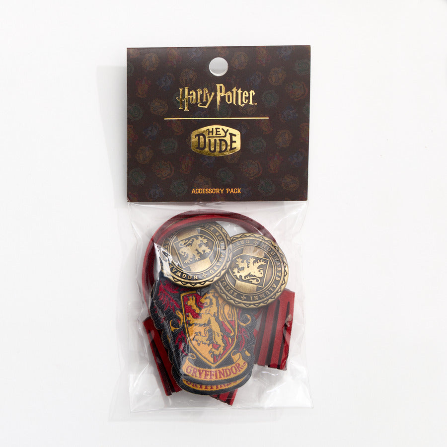 Prove your loyalty with this Harry Potter x HEYDUDE Gryffindor accessory pack that includes a tassel. Gryffindor coin and crest to customize your own Potter pair. First house pack isFREE with purchase of the collab Wally or buy additional house packs and show even more support for other houses.