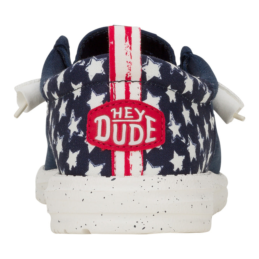 Set your sights on the Wally Funk Americana Stars for the summer. Crafted with rich. americana-inspired tones. these travel-ready go-to’s are perfect for lazy days clambaking on the Cape. Elastic laces and a comfy. cushiony removable foam insole make them the best for exploring charming harbors and historic lighthouses in stars-n-stripes style.