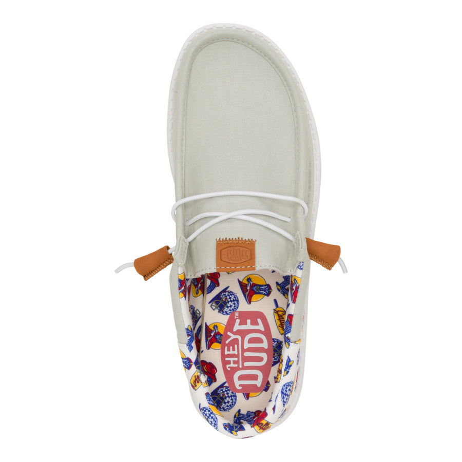 If your heart belongs in Dallas. then your feet belong in this special city edition of the Wally Funk. These shoes are lightweight and easy to slip on. with an outsole so flexible you can fold it up in your luggage. The soft canvas upper is detailed with a Dallas print on the heel.