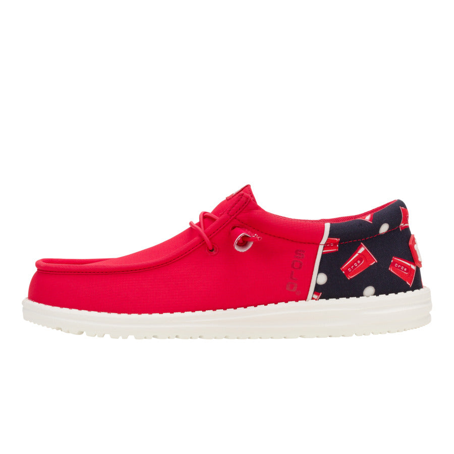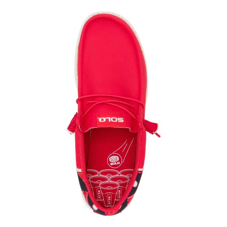 Party rizz. locked in. This HEYDUDE x SOLO Cup collab is here with ultimate comfort for hanging out and playing pong all day. With red SOLO cup tassels and a limited-edition print. so you can show up to the table with some serious points for style.