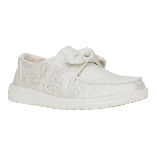 You are the belle of the ball in the Wendy Bow Shimmer. This dazzling new go-to combines a playful fixed bow with a head-turning metallic shimmer upper. making every step shine. While a fun. cow print EVA foam-filled removable insole cushions underfoot.