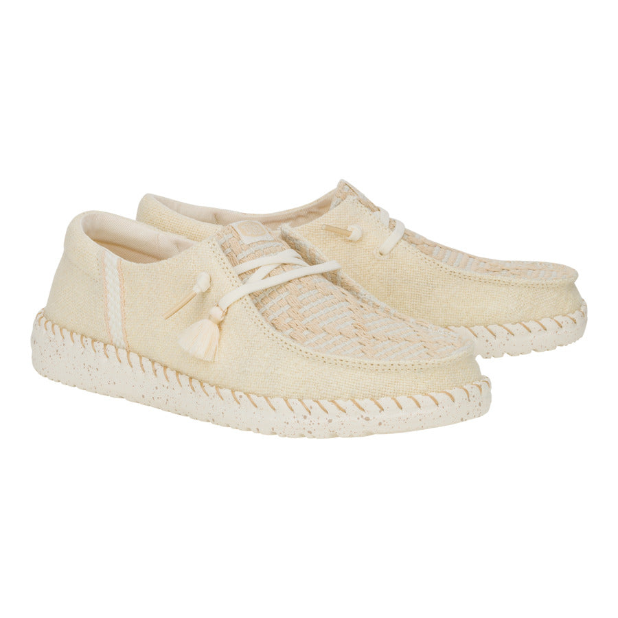 Channel your inner beach babe with the Wendy Funk Coastal Jute . These breezy kicks have a woven jute upper inspired by your favorite beach blanket and whipstitch detailing on the midsole for added fun. Conquer your day in style and comfort with a cork footbed. easy-on elastic laces. and a touch of coastal flair with playful lace tassels.