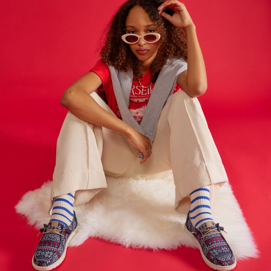Step into sweater season (see what we did there) in an alpine print that rivals your coziest knits??not to mention just as comfortable. With HEYDUDE signature construction like a cushioned ankle collar. removable foam insole. and lightweight flexible outsole. Sweater weather. we are *so* ready for you.